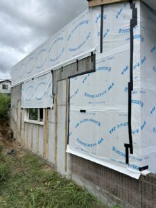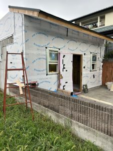 外壁のほうは増築部分を含む2面プラス屋上の工事でした。まだシーリング工事は完了しておりませんが板張りは本日無事に終了です❗