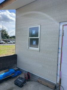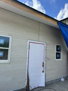 まだシーリングと雨どい工事は残っていますが破風はホワイト色で施工済です!