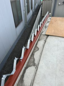 古い屋根との隙間も板金にてカバーし雨どいも新規で取り付けて完了です!