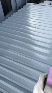 勾配をつけるためにC型鋼を取り付けて折板屋根にて施工しました。