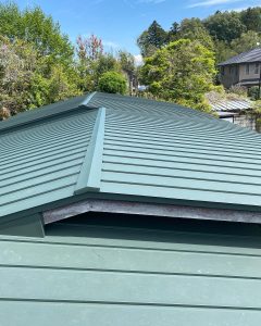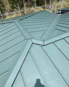 こちらのお宅は築40年の時に当社へお問い合わせいただき既存の瓦棒葺きの上に新規野地板を施工後、勘合式立平葺きへとカバー工事を。