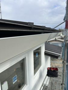 以前屋根工事を施工済みの新築住宅の破風板金と雨どい取付けの最終仕上げ工事でした。