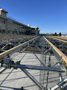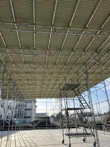 某会社様の簡易単管小屋の屋根に波板を葺きました。