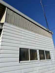 こちらの波板、ガラス繊維が入ったもので今回は外壁ですが波型スレート屋根の明り取りにもよく使われていたものでごらんの通り色が変色して濁ってしまい明り取りと呼ぶには・・・という感じになってしまっています。しかもこの波板は劣化で表面が弱くなるとガラス繊維自体が徐々に取れてしまい、撤去の際はキラキラとガラス繊維が舞い散り首筋やら手首やらいたるところに付いてしまいチクチクになります😣