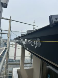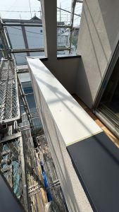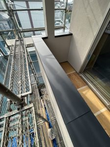 破風板金、雨どい工事。そして今回はバルコニー部の笠木板金まで。