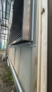こちらは外壁カバー工事の現場、下地が終わり役物付けが始まっております。