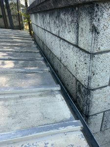 隣との建物間は今までは通常の雨どいでしたが大雨の時に水が染みてくるとのことでしたので箱樋を施工して解決です❗