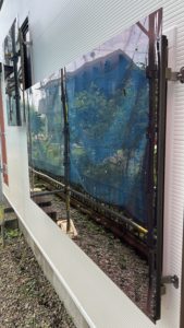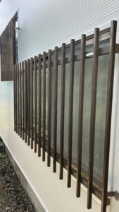 面格子に目隠しになるようなものをとのことでポリカの平板を。以前は市販のものを取り付けていたが劣化で5,6年でダメになってしまったようですが今回はしっかりと!