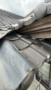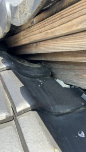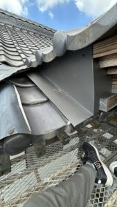 ご覧の通り瓦屋根のため元請けさんからは谷周りかな?程度で屋根上へ。