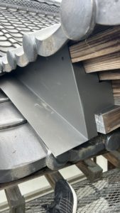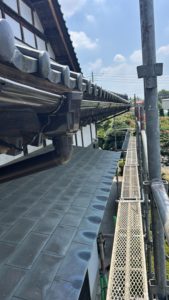 ということで対象部位を板金でカバー。勾配がきついため足場を設置させていただきました。当社ではほんの少しの仕事でも危険が伴う場合は足場を架けさせていただいております。