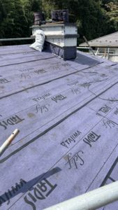 換気煙突は当初は塗装仕上げの予定でしたがお客様が「屋根が綺麗になったらなんか逆に目立つな~」と。