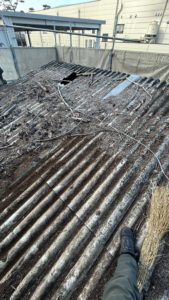 倉庫のため大きさもなく、いちばんにアスベストを完全になくしたいとのことで全撤去という運びになりました。